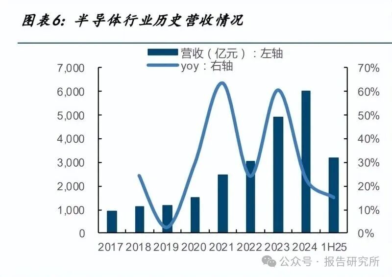 举座来看,证实申万二级行业分类,半导体 25H1 营收为 3182.9 亿元,同增 15.0%,归母 净利润为 241.6 亿元,同增 37.4%。25Q2 营收为 1903.1 亿元,同增 16.6%,环增 48.7%, 归母净利润为 162.5 亿元,同增 38.7%,环增 105.6%。